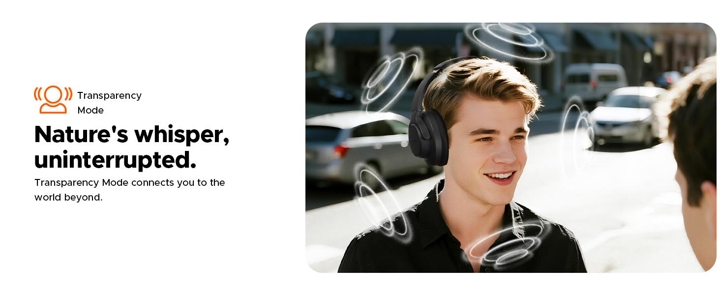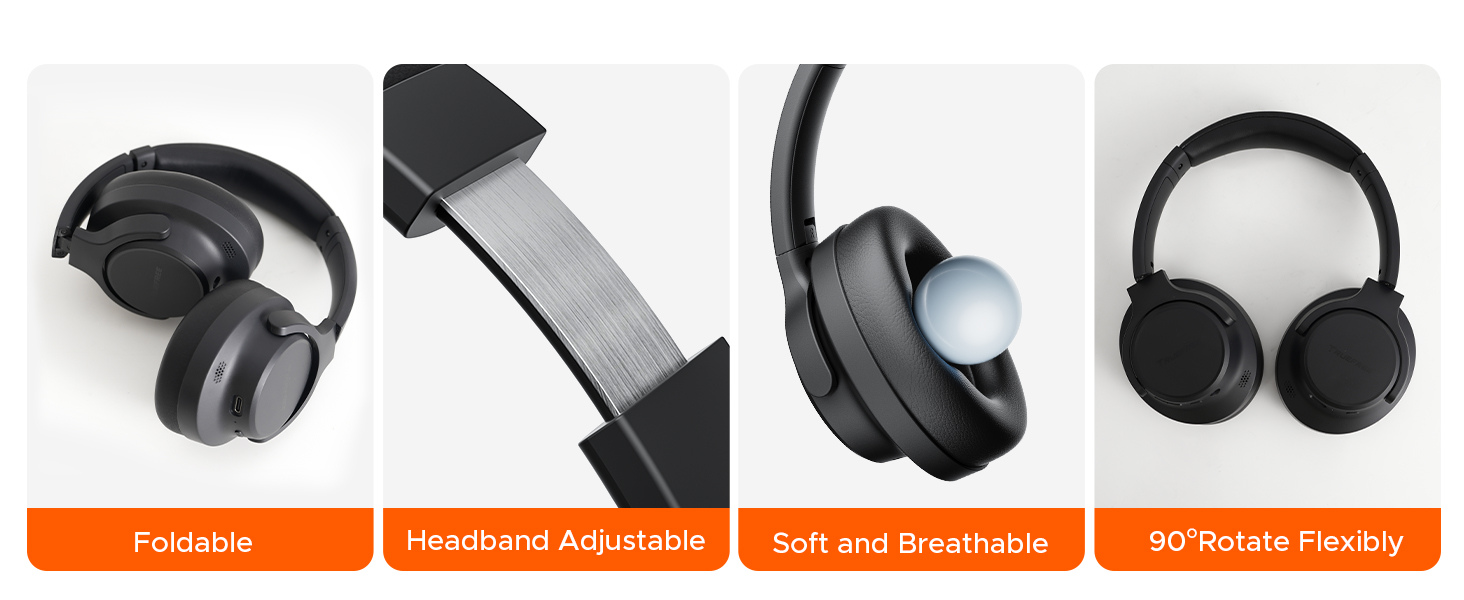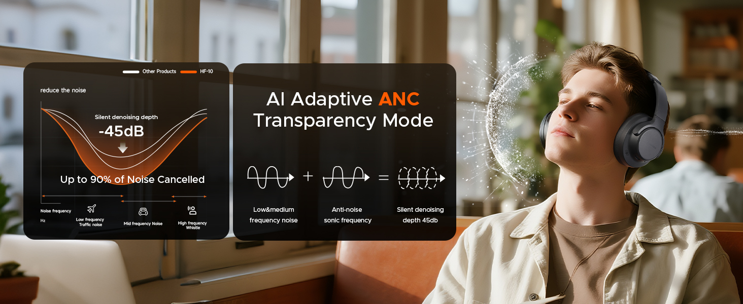 【Active Noise Cancelling (ANC) with Transparent Mode】 Experience unparalleled quiet with advanced Active Noise Cancelling (ANC) technology that blocks up to 90% of ambient noise.Switch to Transparent Mode to hear surroundings clearly—ideal for travel announcements or conversations without removing your headphones.
