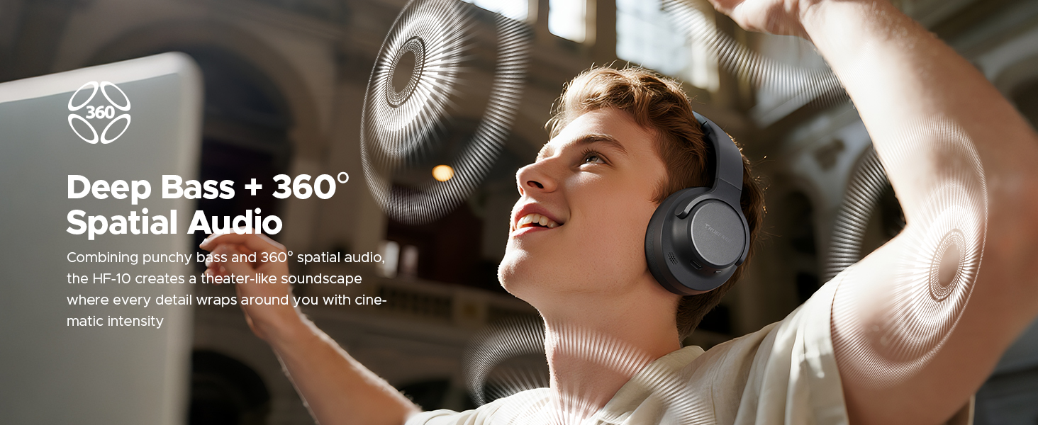 【All-Day Comfort & Lightweight Fit】 Crafted with ultra-soft protein leather ear cups and an ergonomic headband, these over ear headphones wireless Bluetooth are featherlight yet durable. The adjustable fit ensures zero pressure on your ears, making them perfect for long listening sessions, online classes, or extended travel.